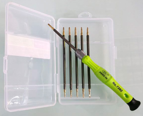 | 内装部件: | | 1、T2-----------------------T6 批 | | 2、T4-----------------------T5 批 | | 3、PH#000十字批--------- 0.8mm五角批 | | 4、PH#000十字批--------- 1.5mm一字批 | | 5、PH#00十字批------------1.2mm五角批 | | 6、2.0mm三角批------------2.0mm一字批 |