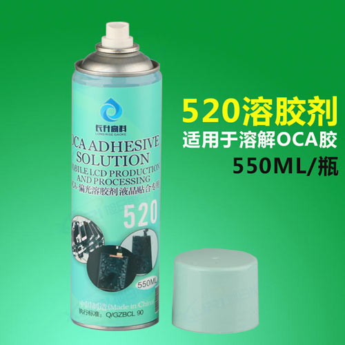 规格:550ml一瓶。 520除胶液使用于iphone、HTC、三星等智能手机触摸屏手机爆屏返修,可快速去除液晶及功能片表面OCA胶,涂抹适量去除液覆盖在胶层表面3~5秒,用刀片轻轻刮除或用无尘抹布擦去即可。除胶快,无残留,不损坏液晶表层