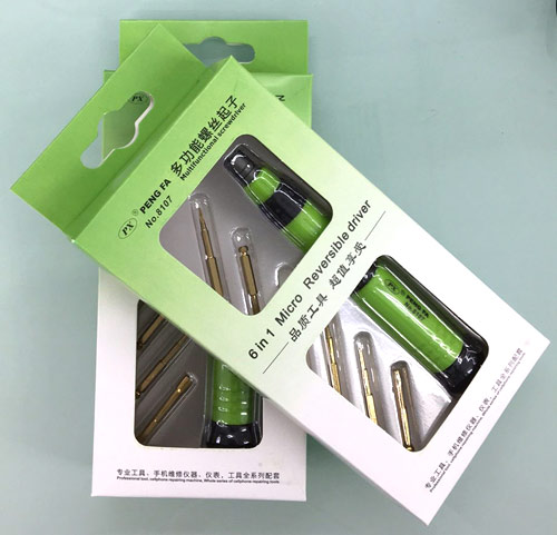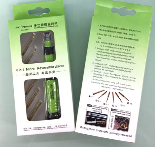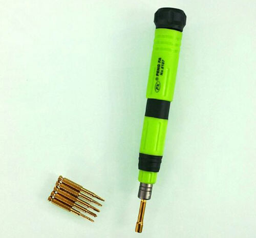 1 本产品的手柄采用金属压纹防滑处理,配置的6刀头采用台湾进口高精密S2合金材质 2 适用于手机、平板、笔记本、眼镜、航模等精密电子仪器仪表 3 注:M2.5内六角螺丝刀为苹果6S中板专用套筒 Y0.6专用螺丝刀为苹果7主板专用
